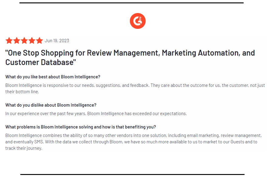 Automatically gather guest data and reviews from your online reservations platform into your Bloom Customer Data Platform.